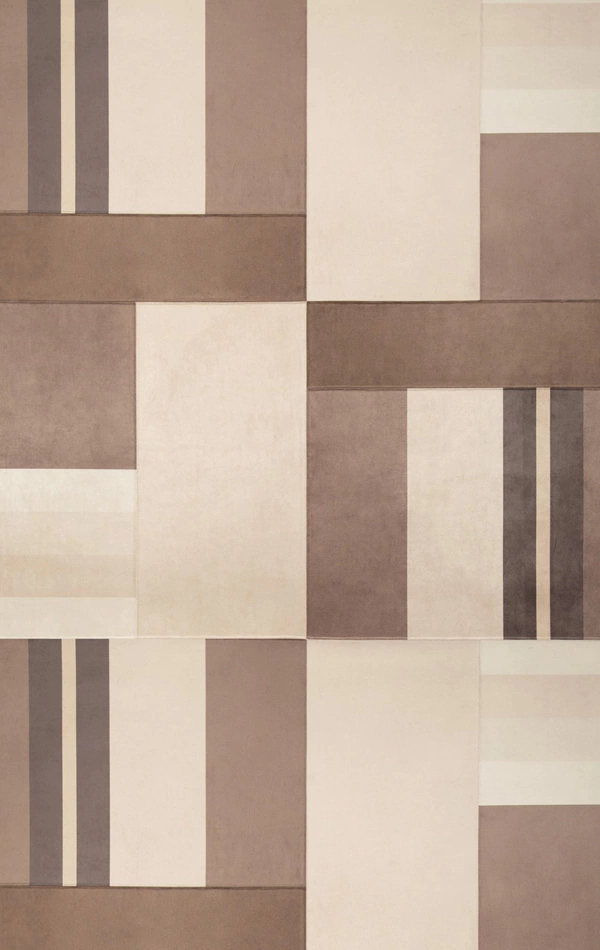 O tapete Bloquer 2021, criação da designer Vanessa Martins brinca com paleta de cores sóbrias e formas geométricas.